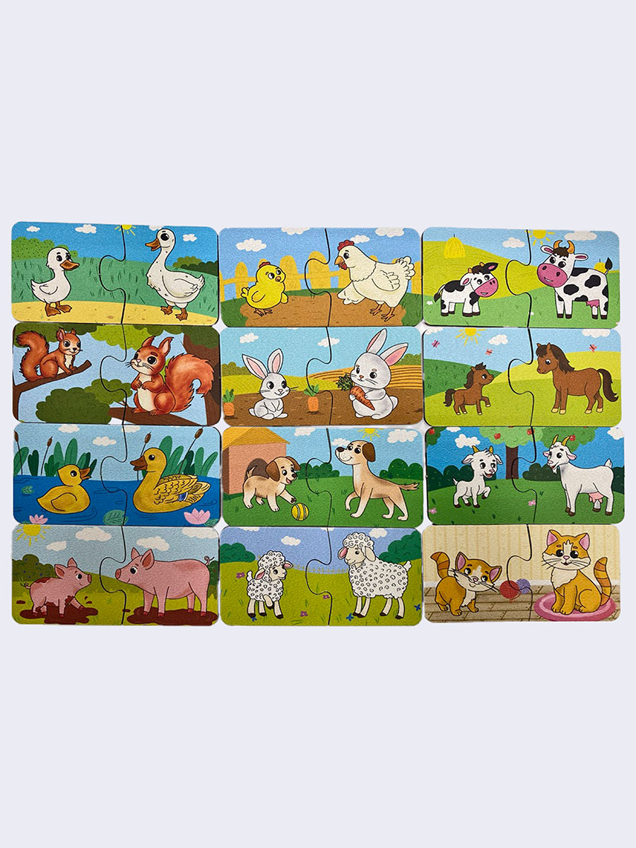 Десять красочных пазлов познакомят ребенка с числами от 1 до 10. Картинки пазлов прекрасно иллюстрируют состав числа и примеры на сложение и вычитание, результатом которых является данное число. Каждый пазл состоит из 4-х больших деталей размером 50х55 мм.