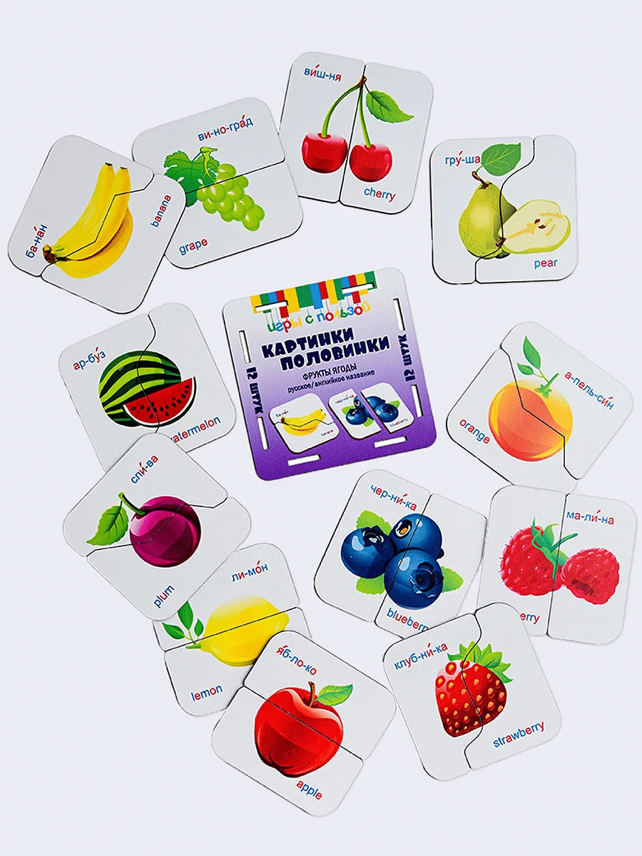 Деревянные картинки-половинки можно не только соединить, но и рассортировать на ягоды и фрукты.