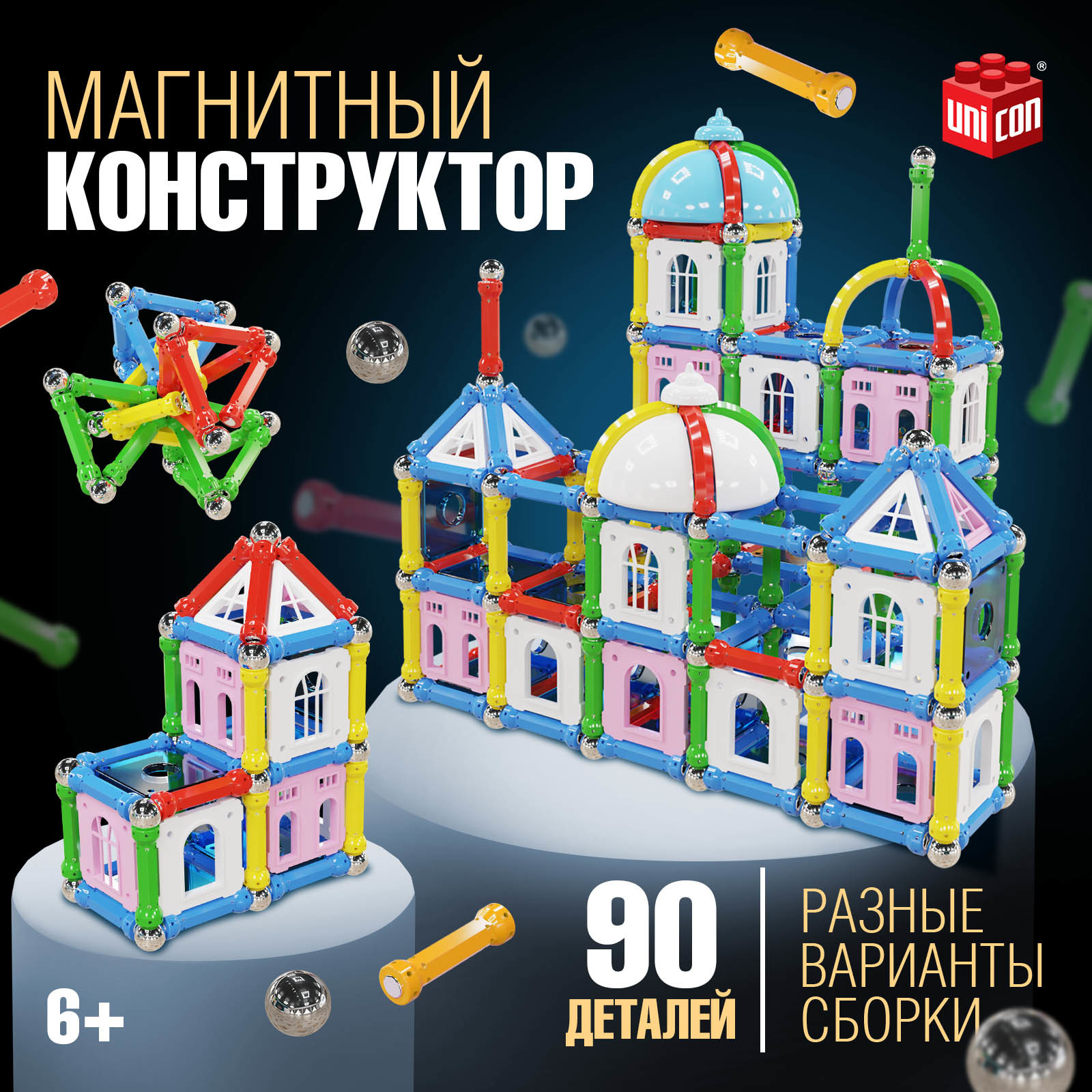 Соберите простые 3D-фигуры или сложные модели, сочетая магнитные палочки и стальные шарики. У вас всё получится!
