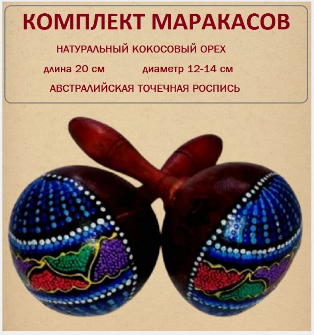 Оригинальный музыкальный инструмент из Индонезии. Маракас – это музыкальный инструмент индейцев. Родиной маракасов считаются Антильские острова. Индейцы племени Таино первыми придумали высушивать округлые, с плотной корой, плоды горлянкового дерева и через маленькие отверстия наполнять их галькой или семенами растений.
