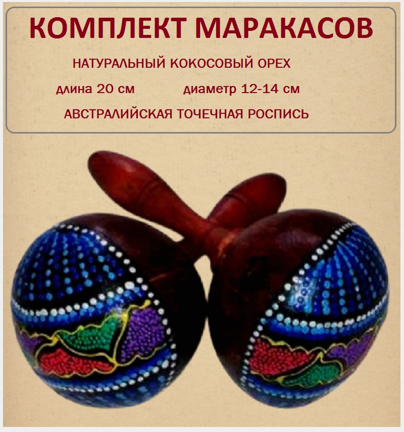 Маракасы из кокоса диаметр 13 см, длина 20 см (набор 2шт)