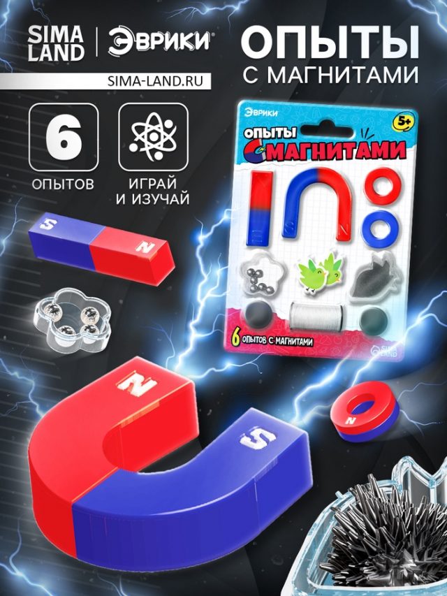 Набор «Опыты с магнитами» знакомит с основными законами физики. Набор помогает отвлечься от гаджетов и провести время с пользой и удовольствием. Ребёнок проведёт 6 увлекательных опытов, узнает принцип работы магнита, научится работать с материалами, следовать инструкциям и проводить самостоятельные исследования.