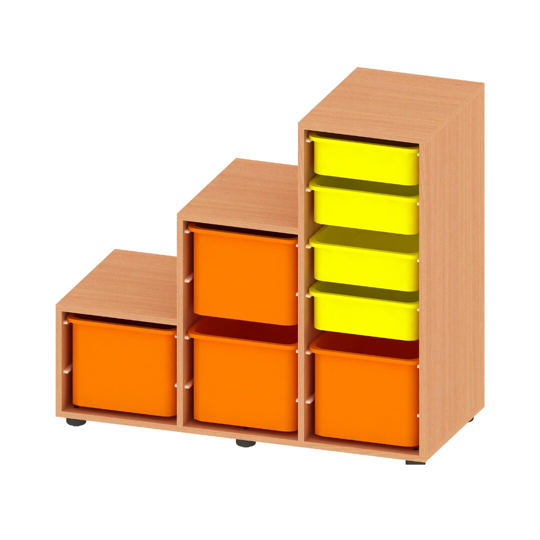 Комплект: стойка, 4 малых ящика + 4 больших ящика. Размер: ШхВхГ мм 976х886х430 Материал: ЛДСП 16 мм. Кромка ПВХ 0,4 мм.