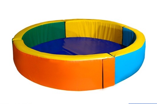 Сухой бассейн представляет собой мягкое изделие, состоящее из модулей и дна, чехлы которых сшиты из винилискожи и имеющих наполнитель поролон (ППУ), соединения модулей и дна выполнены из прочных липучек велькро для обеспечения безопасности детей при играх в нем. Для комфортного и долговечного использования, сухой бассейн оснащен молнией со скрытыми замками для удобного монтажа или демонтажа наполнителя в случае необходимости.