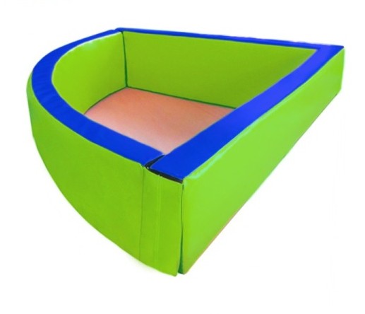 Сухой бассейн представляет собой мягкое изделие, состоящее из 3-х модулей и дна, чехлы которых сшиты из винилискожи и имеющих наполнитель поролон (ППУ), соединения модулей и дна выполнены из прочных липучек велькро для обеспечения безопасности детей при играх в нем. Для комфортного и долговечного использования, сухой бассейн оснащен молнией со скрытыми замками для удобного монтажа или демонтажа наполнителя в случае необходимости.